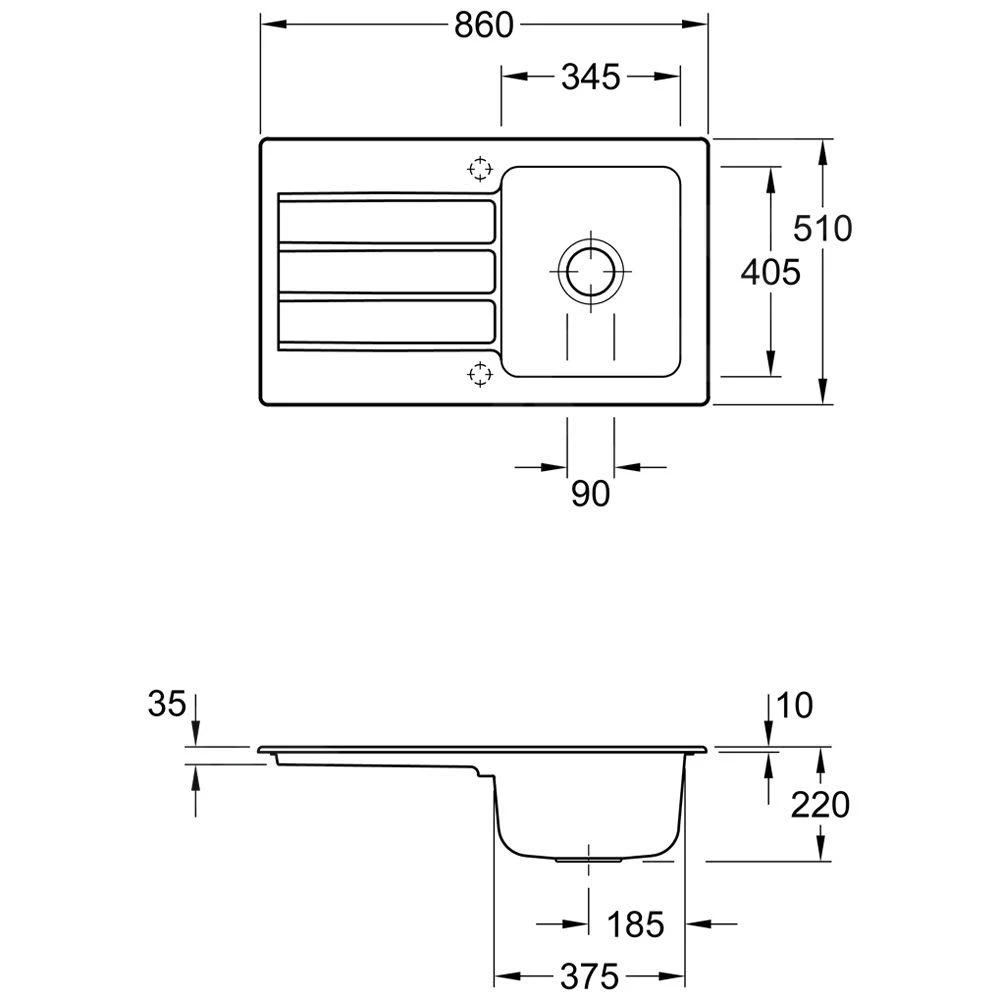 - totaal afmetingen spoelbak: 830 x 480 mm