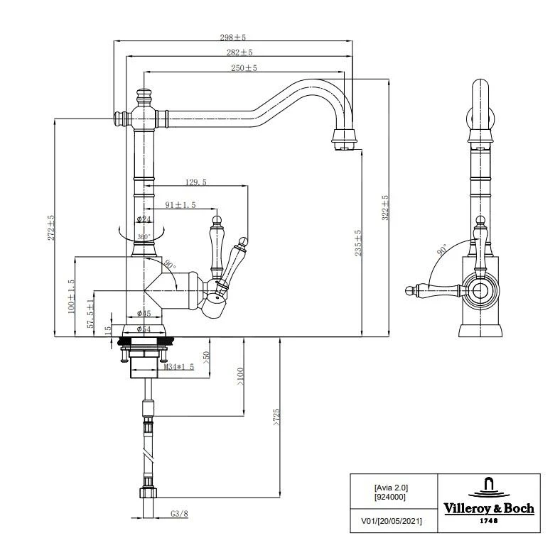 - kraanhoogte: 298 mm