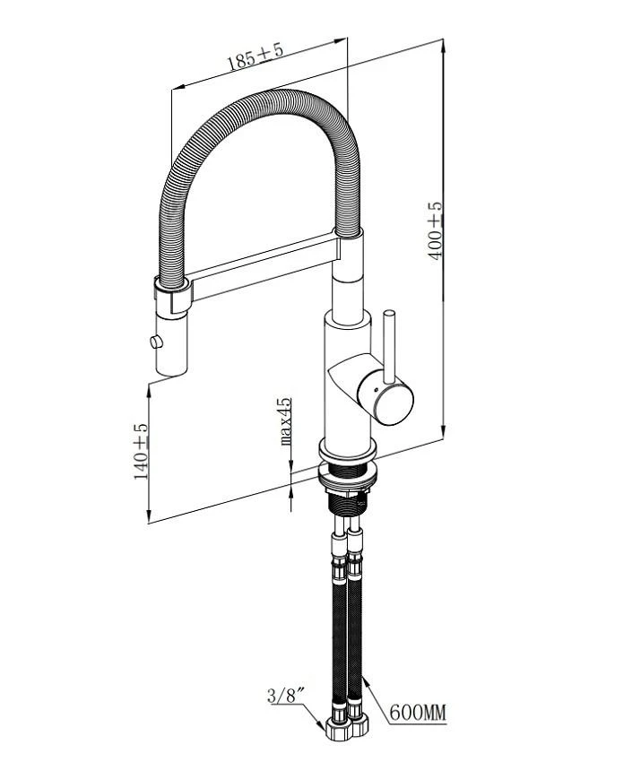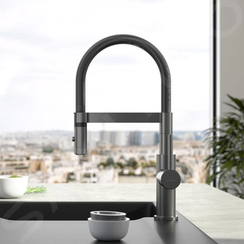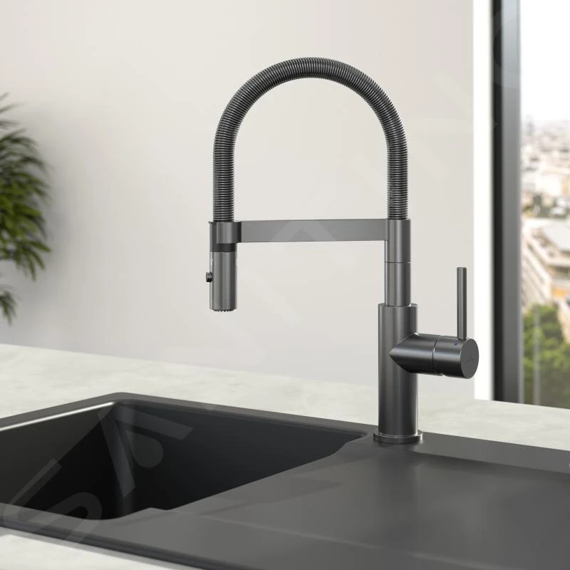 Eengreeps keukenkraan met flexibele arm en stroomomschakeling