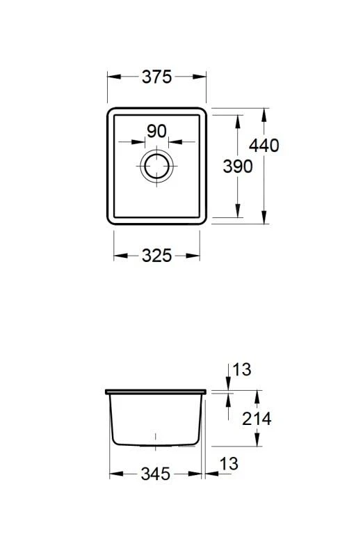 - totale afmeting van de spoelbak: 375 x 440 mm