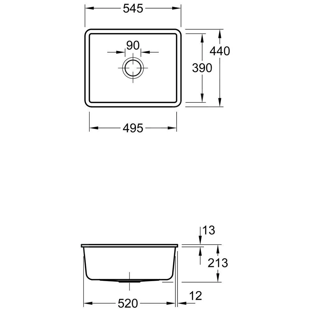 - totaal afmetingen spoelbak: 545 x 440 mm
